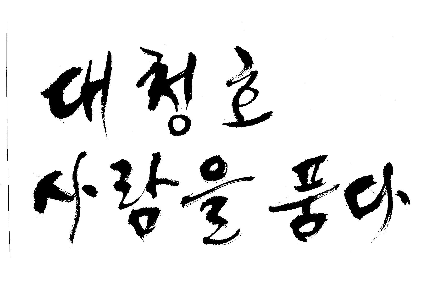 캘리 부탁드려요 김철호 일반 0 5549 2009.06.03 12:12 > > > > > 대청호 > > 사람을 품다 > > > > - 방송용 다큐멘터리에 들어갈겁니다 > > 죄송합니다만 빨리 부탁드려요 > > 두줄로 가운데 맞춤으로 써주세요 - > > > > 줄맞춤은 알아서... >